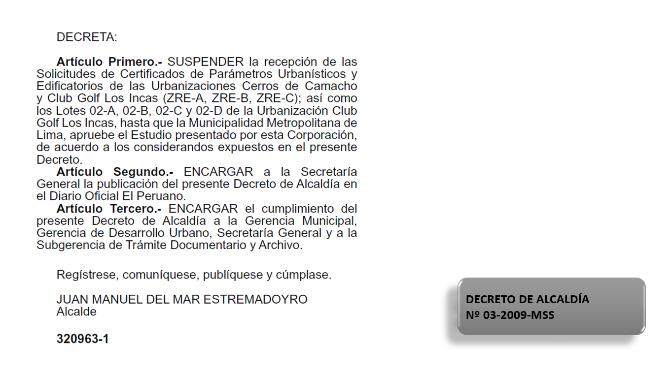 ZONA de reglamentación especial del Golf los Incas y Cerros de Camacho