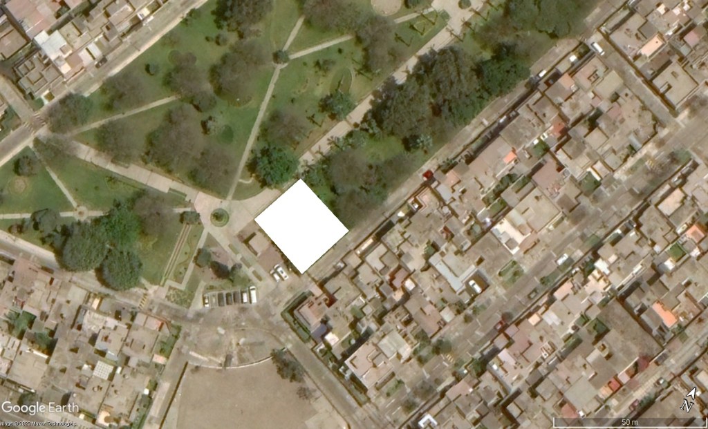 - Uno de sus frentes da al paseo que lleva a la Capilla de MARÍA MADRE DE DIOS, haciendo esquina con el segundo que mire a la capilla que tiene todo el largo colindando directamente con el parque