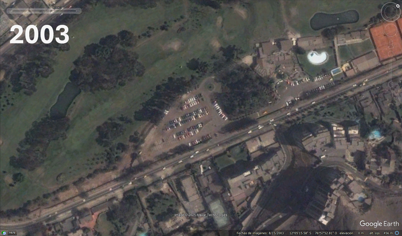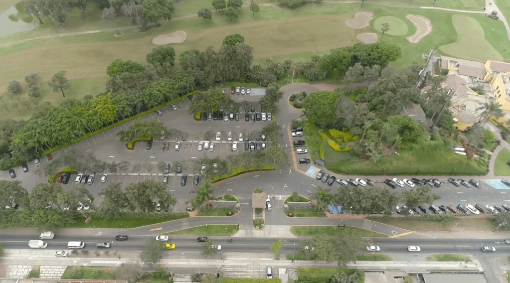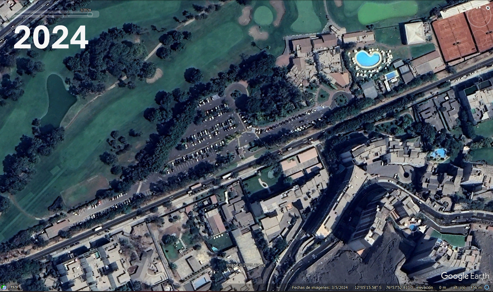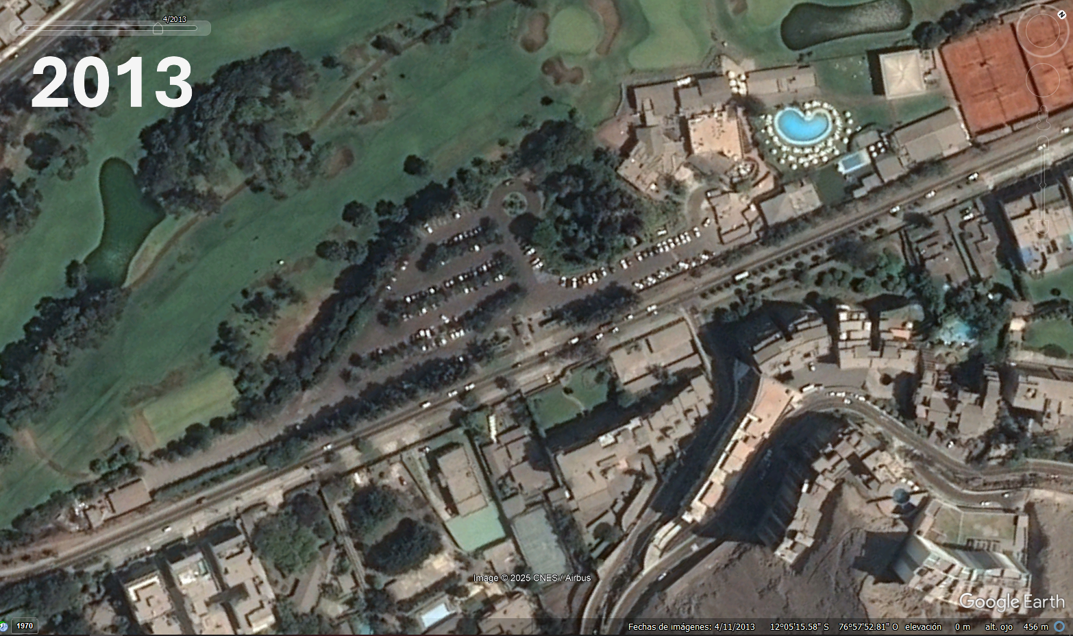 Estacionamientos de Los INKAS GOLF CLUB El crecimiento del area de esatacionamiento la modificacion del acceso El cercado del campode golf las canchas de Tennis el edifcio del club de golf las antenas sobre el morro