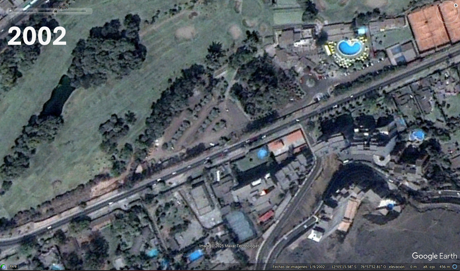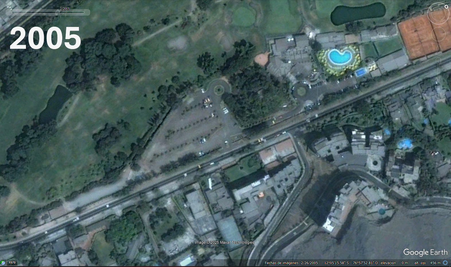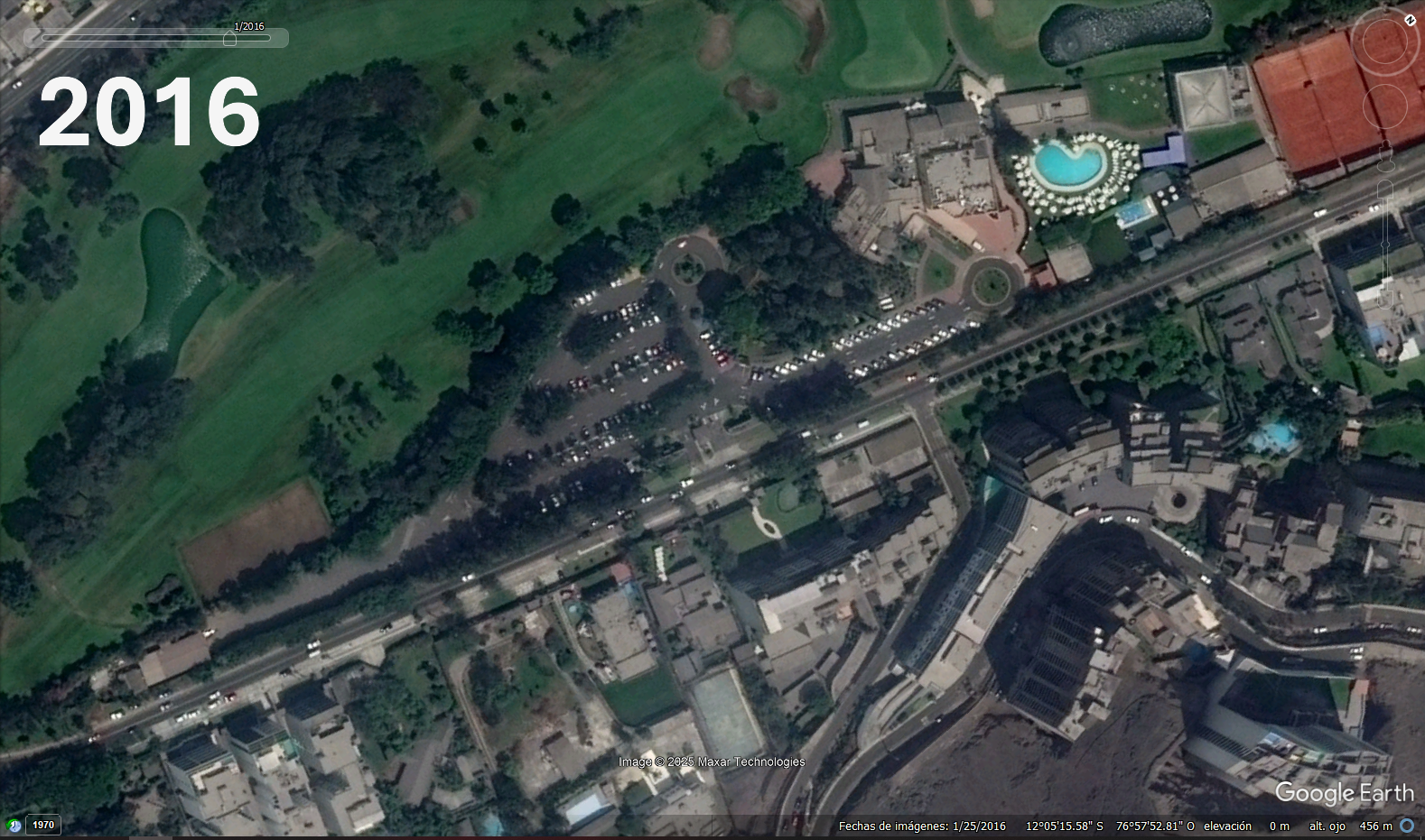 Estacionamientos de Los INKAS GOLF CLUB El crecimiento del area de esatacionamiento la modificacion del acceso El cercado del campode golf las canchas de Tennis el edifcio del club de golf las antenas sobre el morro