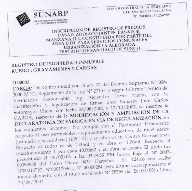 Acumulado de la PARTE B REDUCIDA del lote 11 de la sección IV del GOLF los INCAS con el LOTE 6 de la manzana C de los CERROS de CAMACHO