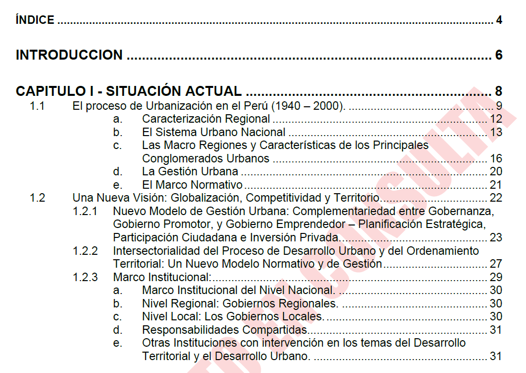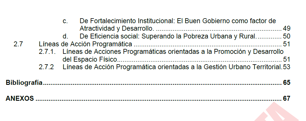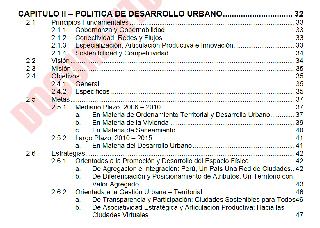 INDICE de los lineamientos de política de el periodo 2006-2015