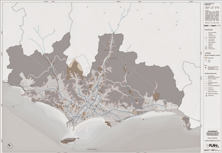 5,000 años atrás, sobre los tres valles que hoy ocupa LIMA METROPOLITANA comenzaron a brotar huacas dispersas entre los primeros canales que humectaron los arenales en los deltas de los tres valles.